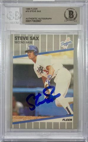 This is an autographed 1987 Topps #769 card that has been hand signed by Steve Sax. Perfect for any collection. This card comes Beckett encapsulated verifying its authenticity. 100% authentic. Another great product brought to you by JAG Sports Marketing.