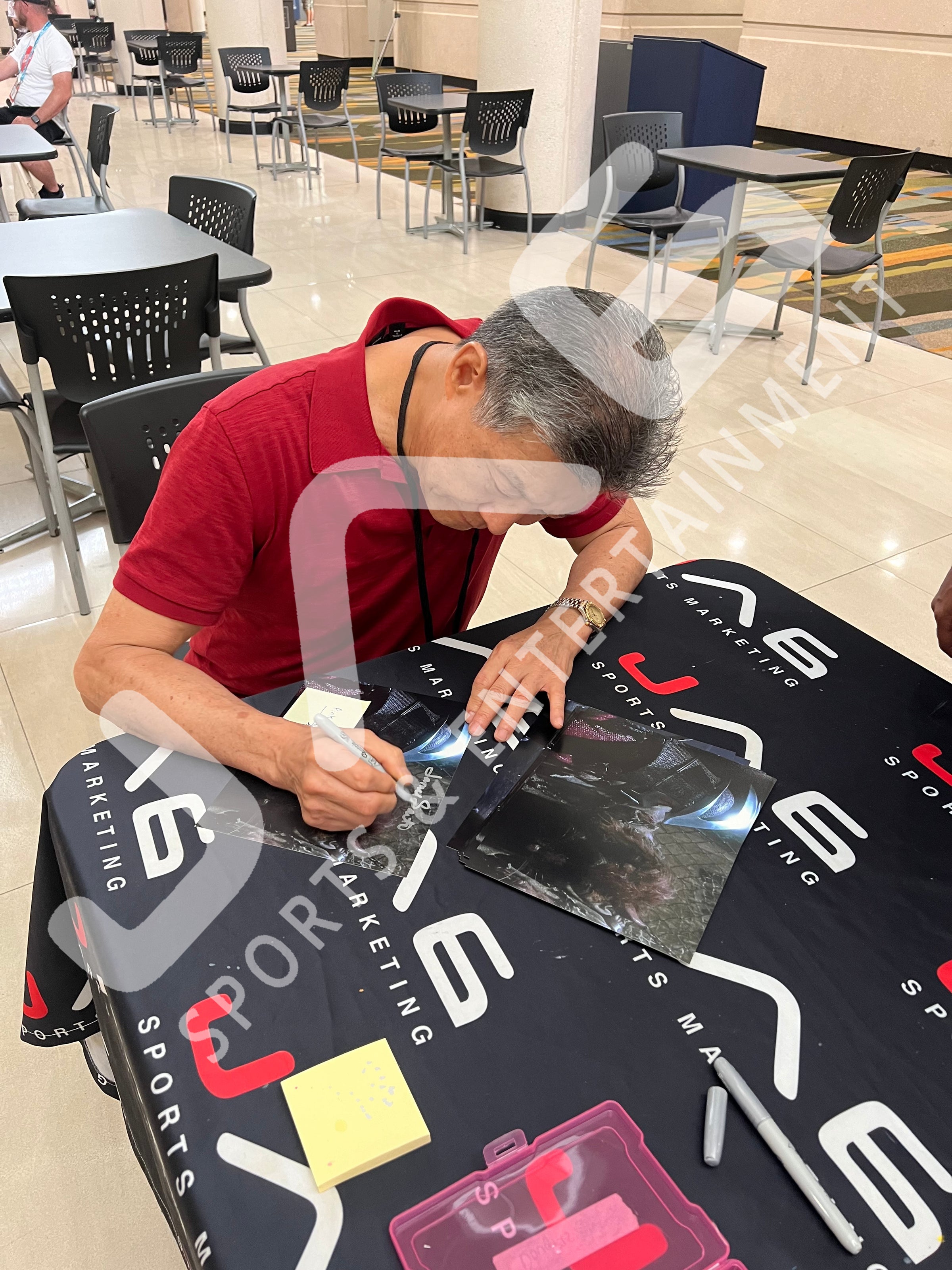 This is an autographed 8x10 photo that has been hand signed and inscribed by James Saito and Kevin Clash. Perfect for any collection. This comes with a certificate of authenticity from JSA. 100% authentic. Another great product brought to you by JAG Sports Marketing.