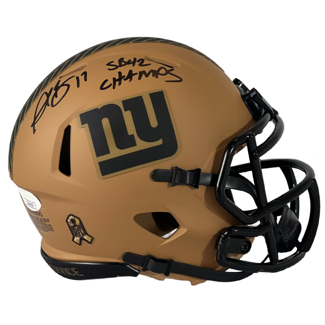 This is an autographed mini helmet that has been hand signed by Plaxico Burress and inscribed "SB 42 Champs". A perfect helmet for any collection. The helmet comes with a certificate of authenticity from JSA. Perfect for framing. 100% authentic. Another great product brought to you by JAG Sports Marketing.