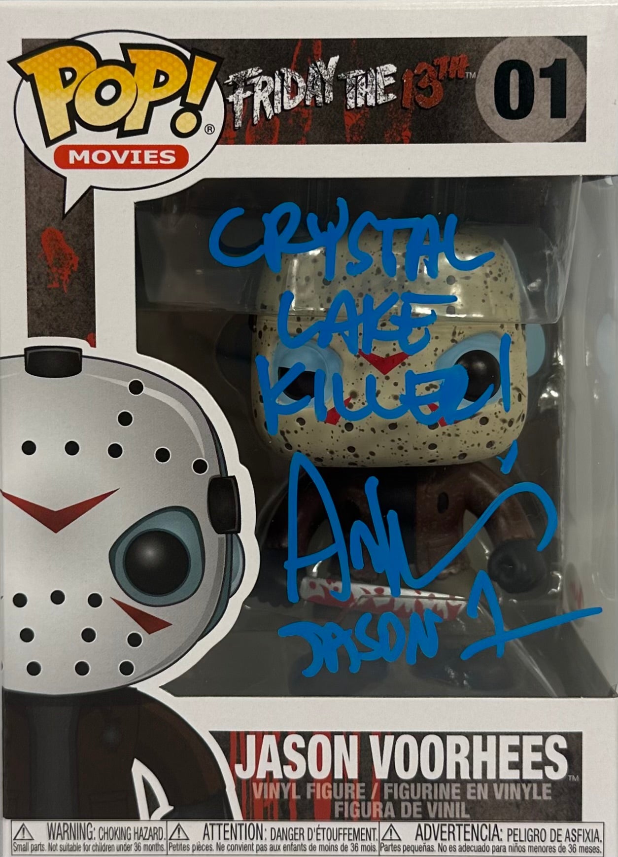 This is an autographed Funko Pop #01 that has been hand signed by Ari Lehman and inscribed "Jason 1" and "Crystal Lake Killer". Perfect for any collection. This comes with a certificate of authenticity from JSA. 100% authentic. Another great product brought to you by JAG Sports Marketing.