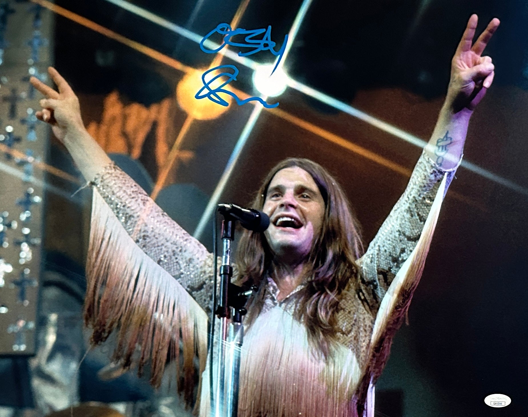 This is an autographed 16x20 photo that has been hand signed by Ozzy Osbourne. A perfect photo for any collection. The photo comes with a certificate of authenticity from JSA. Perfect for framing. 100% authentic. Another great product brought to you by JAG Sports Marketing.