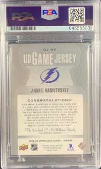 Andrei Vasilevskiy auto card Game Used Worn UD Game Jersey Lightning PSA Encap