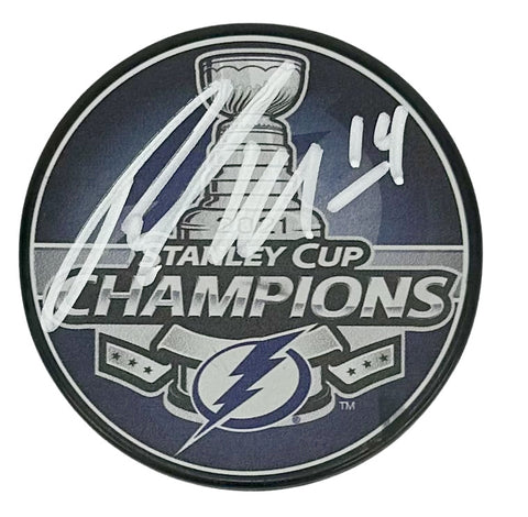 Andrei Vasilevskiy Nikita Kucherov signed Game Used Ice puck JSA COA Lightning