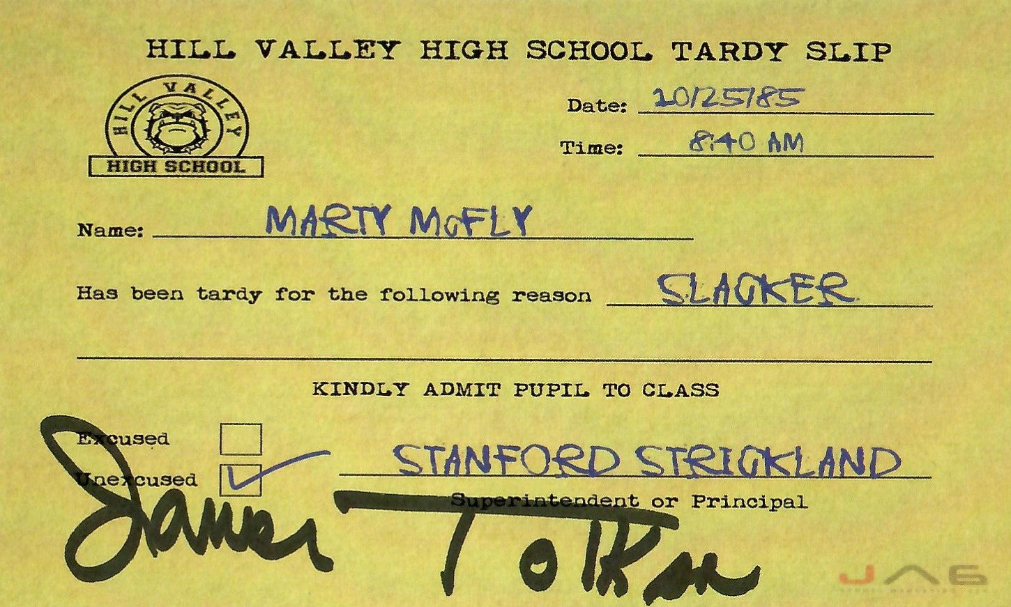 James Tolkan autographed signed card Back to the future Mr Strickland