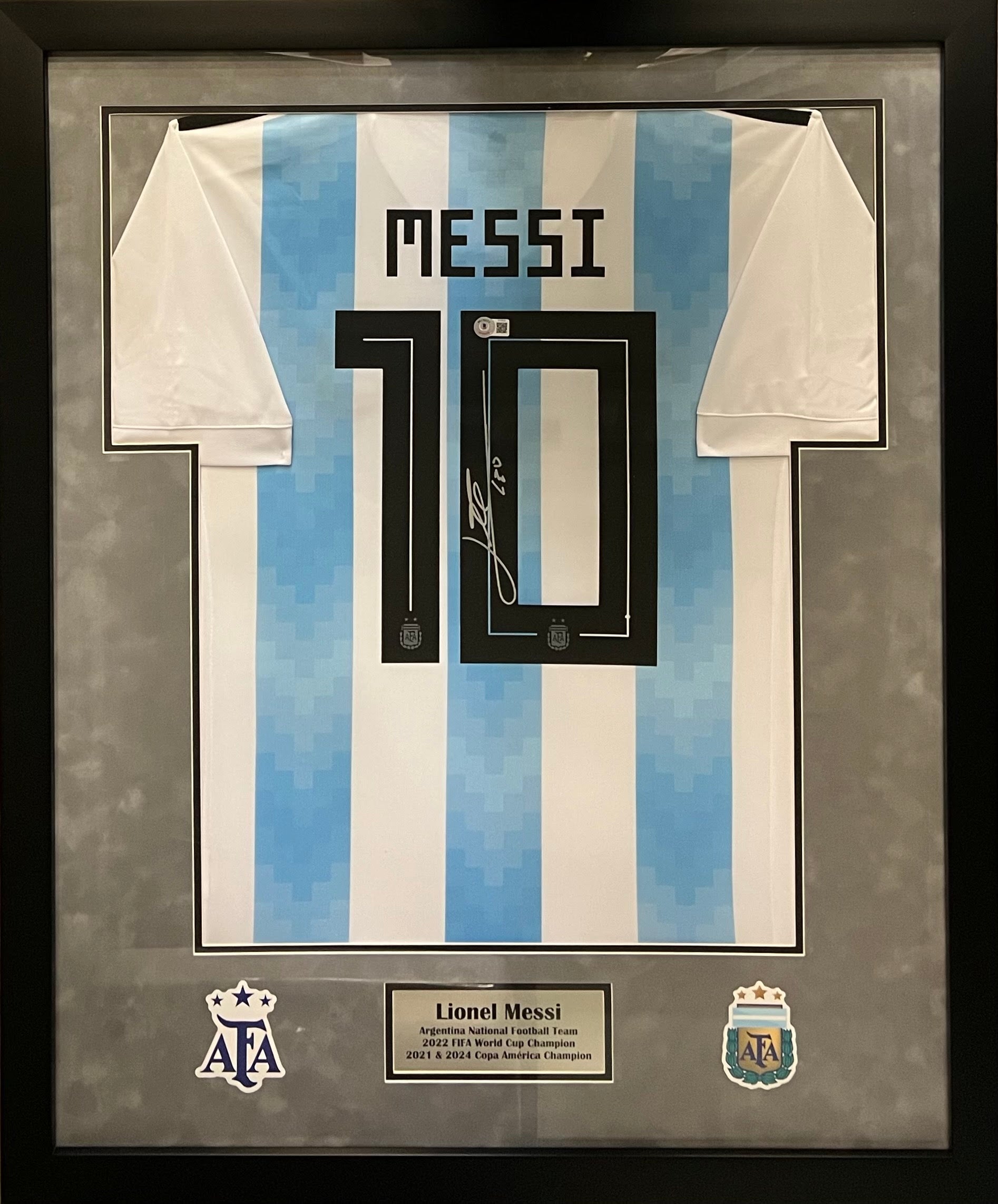 Lionel Messi autographed signed suede framed jersey World Cup Argentina Beckett